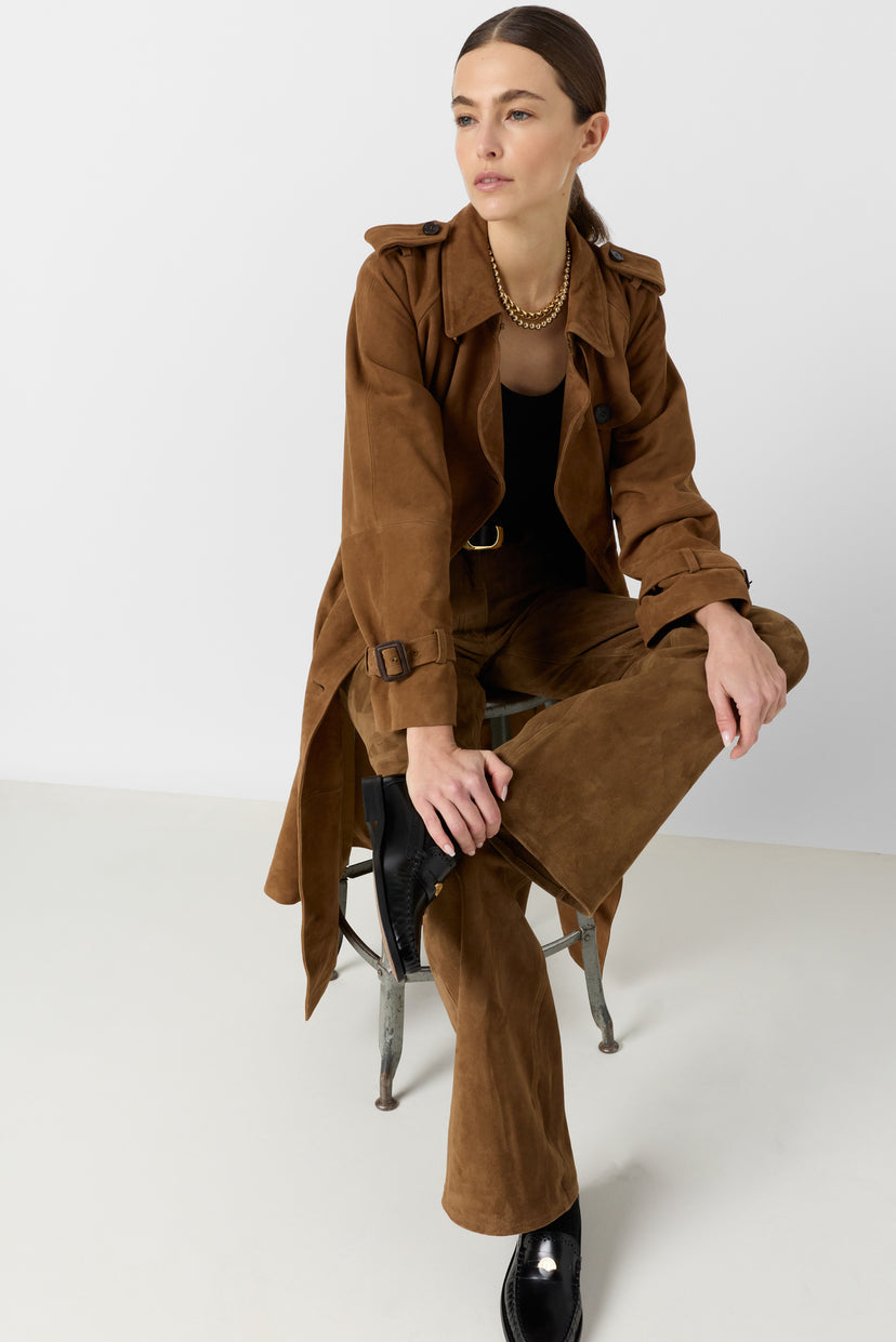 Judy suede leather trench coat