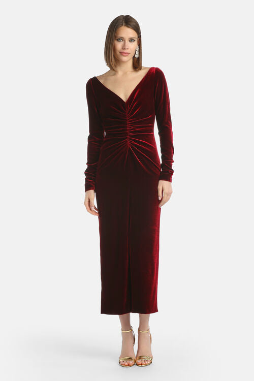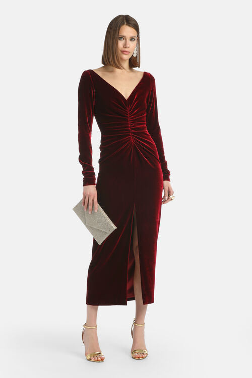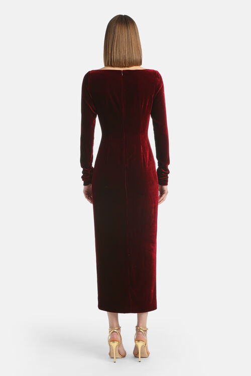 The GELOSO DRESS in Bordeaux combines elegance with comfort. Its thoughtfully balanced composition—79% viscose, 18% silk, and 3% elastane—creates a fabric that flows gracefully while providing gentle stretch for all-day ease. The viscose ensures a soft, breathable feel, while silk adds refined sophistication.