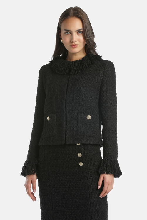 Meet your new style essential—the SEGUITO JACKET in sleek black! This fabulous piece blends 60% polyester, 29% wool, 7% polyamide, and 4% acrylic for a jacket that's as comfortable as it is chic. Whether you're dressing up or keeping it casual, this versatile layer brings instant polish to any outfit. Pure wardrobe magic!